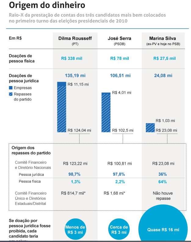 foi o valor doado por empresas a candidatos nas eleições de 2010